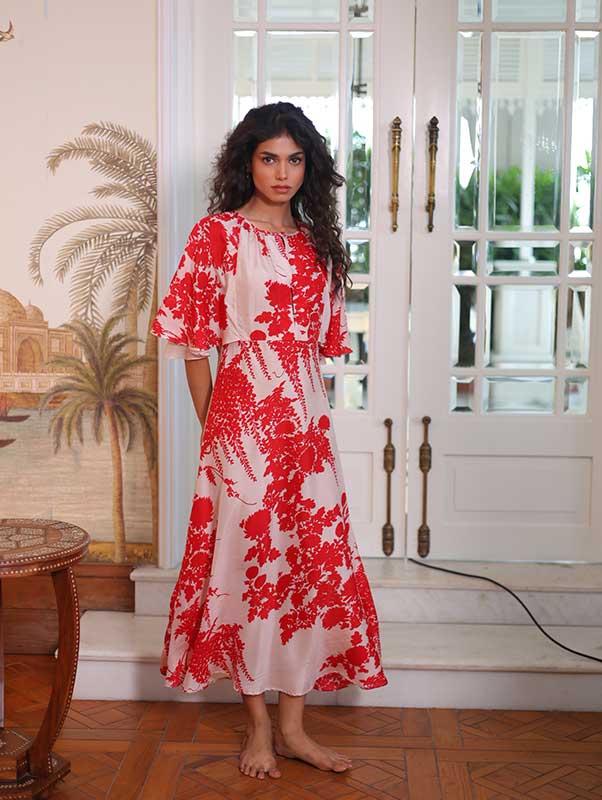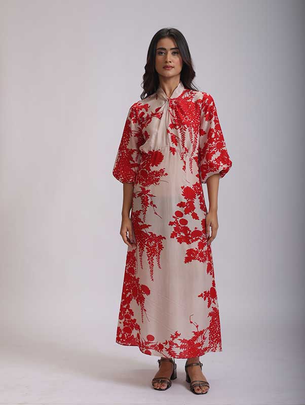 AURA WRAP BLACK DRESS WITH SNOW LILY EMBROIDERY IN COTTON SILK (BLACK)