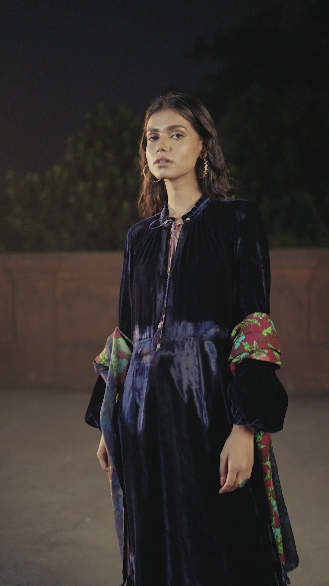 SILK VELVET KIMONO WITH PARSI EMBROIDERY)